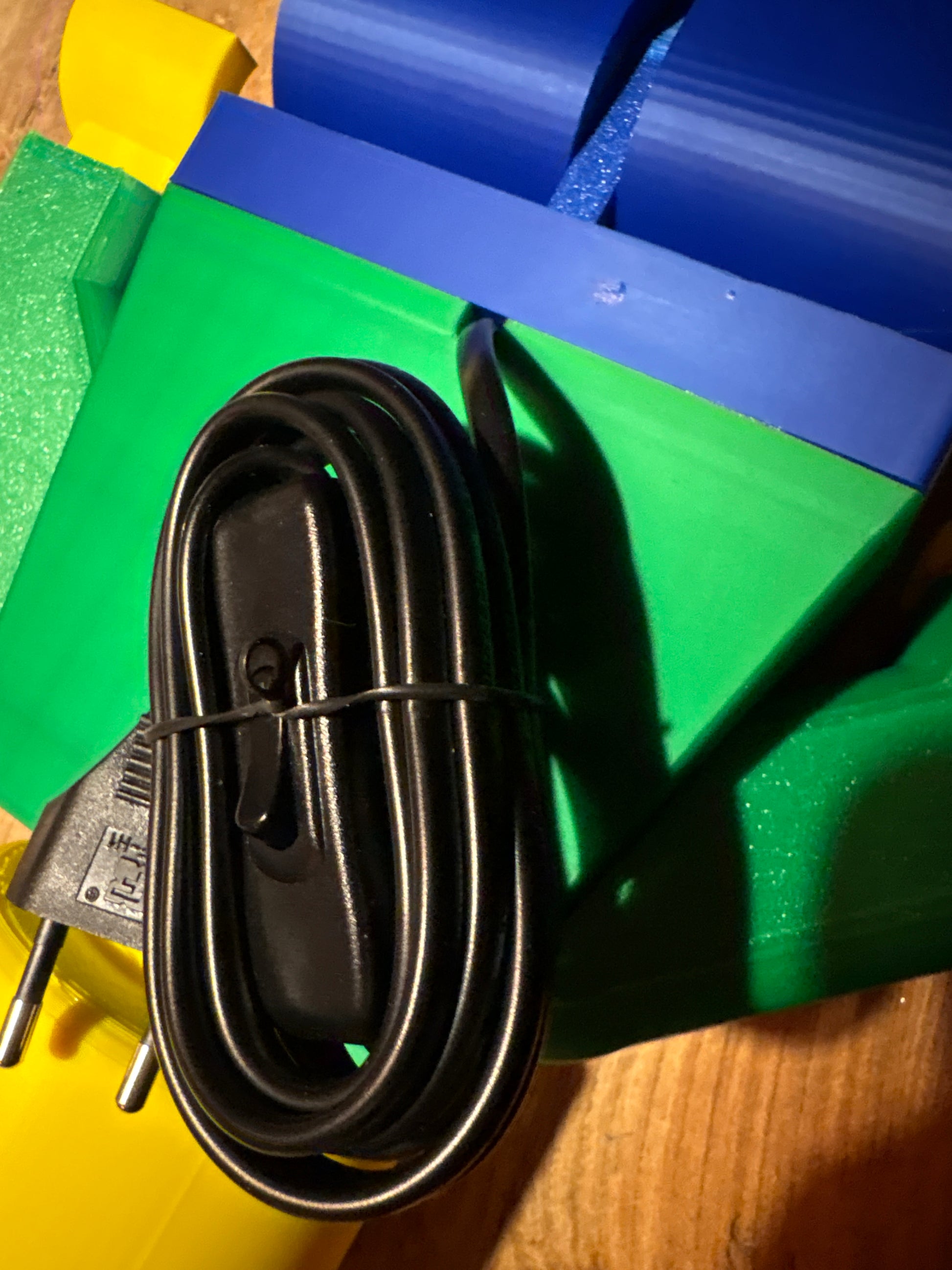 Hij word aangesloten op 220 volt. Daardoor geen speelgoed zolang hij aangesloten zit op 220 volt.